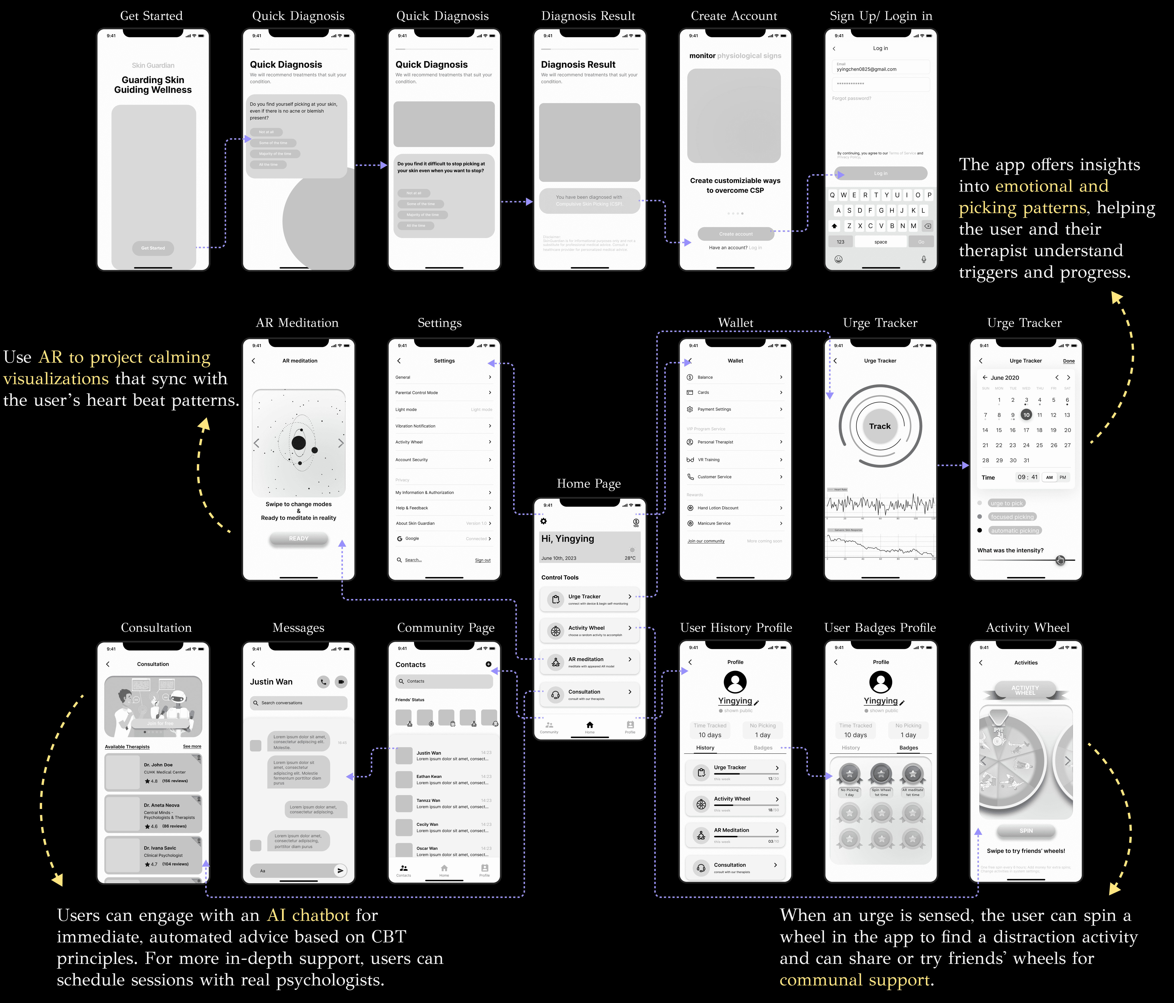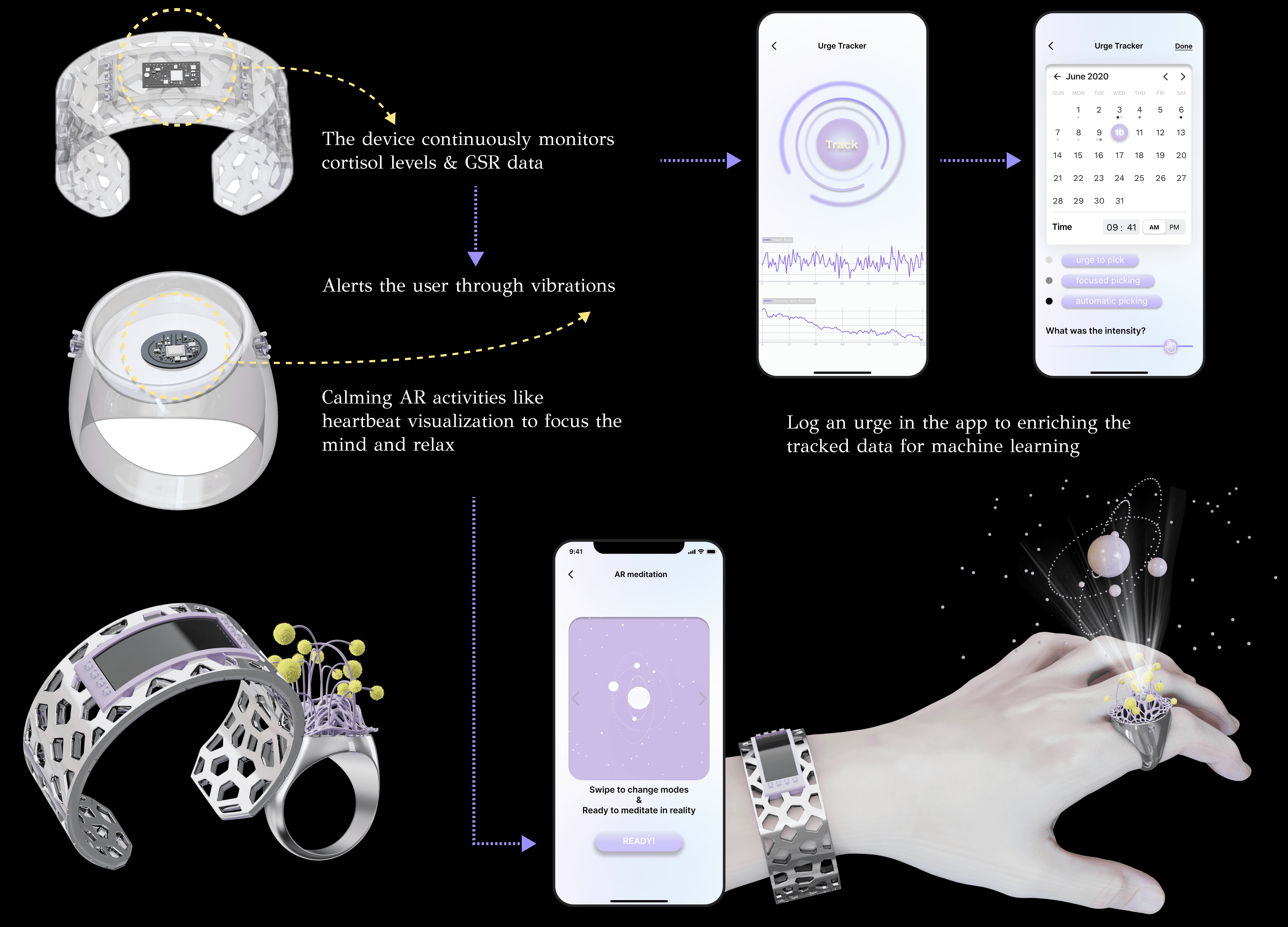 This project presents a wearable device paired with a companion app designed to monitor and alert users to potential skin-picking behaviors. Using sensor-based monitoring and real-time feedback, the system detects characteristic patterns of compulsive skin picking and delivers real-time feedback to gently interrupt habitual behaviors. By offering a discreet and supportive intervention, the project empowers individuals to build awareness, foster mindfulness, and develop healthier coping mechanisms.